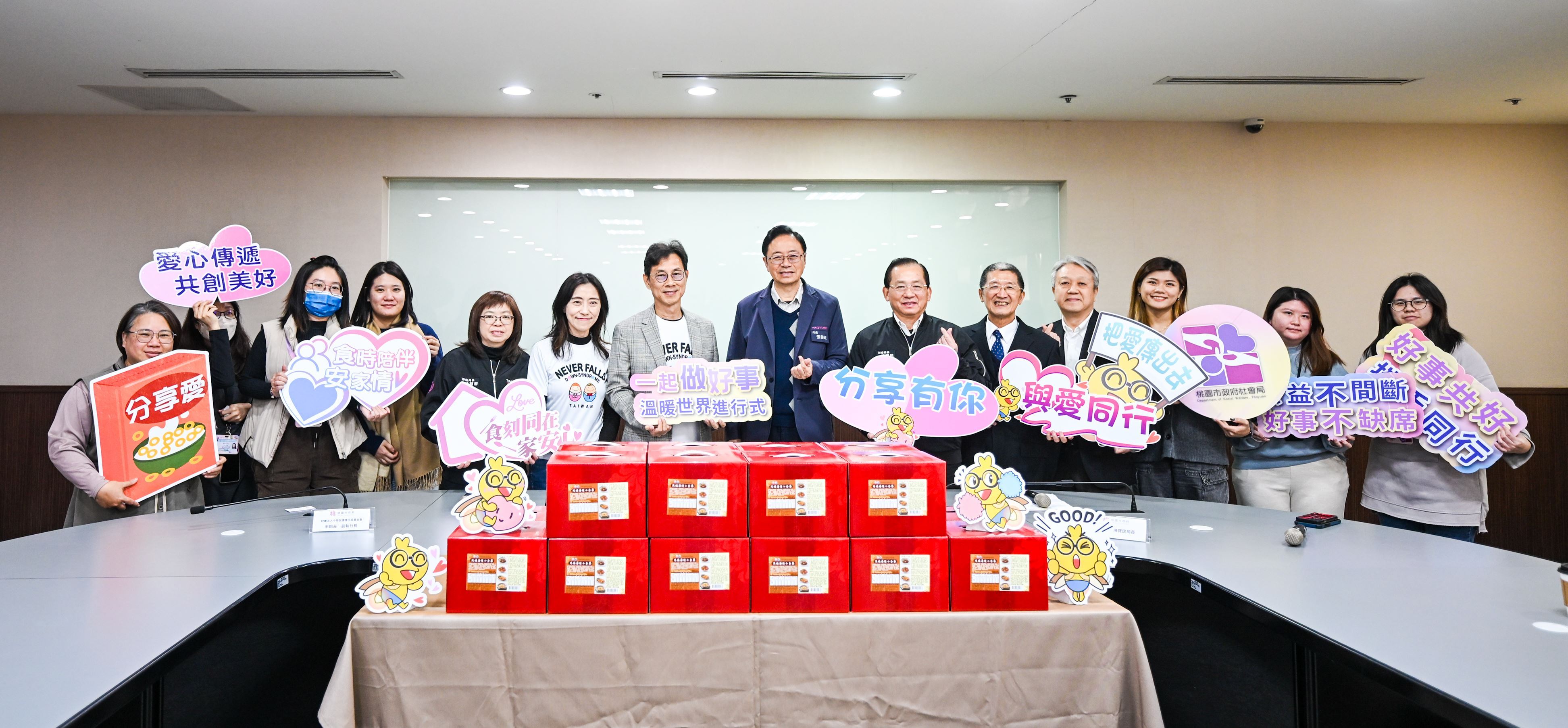 桃園市長張善政今(28)日上午於市府出席「財團法人中華民國唐氏症基金會捐贈儀式」。張市長表示,感謝唐氏症基金會於今(115)年捐贈逾702份年菜,總價值超過新臺幣62萬元予市府,充分展現對弱勢族群的關懷與支持。基金會已連續13年不間斷投入愛心捐贈,透過完善的媒合與協助機制,讓善心資源送達需要的家庭,為許多弱勢家戶帶來實質幫助,也為歲末年終注入溫暖與希望。